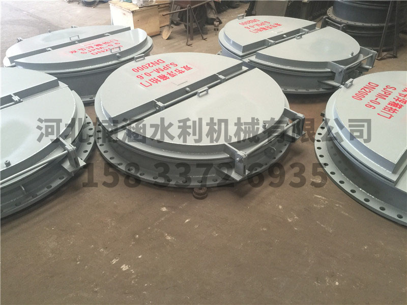 雙節(jié)浮箱式拍門用于單向水流的管道或出水口結(jié)構(gòu)簡單,工作可靠,不需人力操作配有標(biāo)準(zhǔn)法蘭,可與各種管道連接使用 逆水方向承壓能力≤0.1Mpa 本產(chǎn)品可分為圓形拍門(YPM)和方形拍門(FPM)。